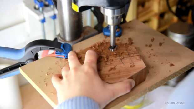 Junto a la zona tallada hacia fuera estoy perforando un agujero donde los cables pueden ir a través y en la parte inferior que estoy perforación de los agujeros un par para hacer espacio para la electrónica.