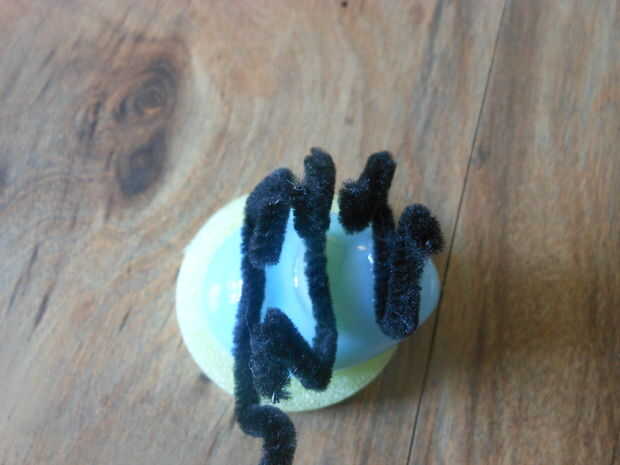 Colocar un sistema de piernas a lo largo de cada tira de pegamento.  Empuje hacia abajo duro y poner la cinta sobre el centro de las piernas para que se mantienen en su lugar mientras el pegamento seca. (Lo siento, ni la foto de este concreto, que veremos en fotos después de he entregado el error.)  El pegamento tarda 1 hora a secas, 24 horas para curar.