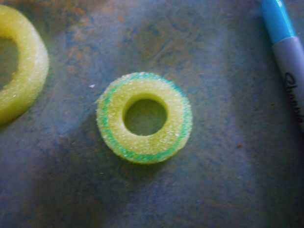 Use un marcador para trazar alrededor de él.  (Lo que busco es algo para amortiguar la luz del té mientras está dentro del huevo.  Esto le permitirán permanecer en el lugar.)