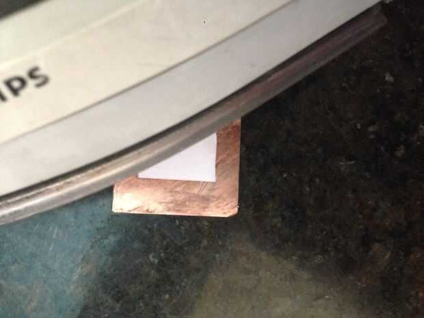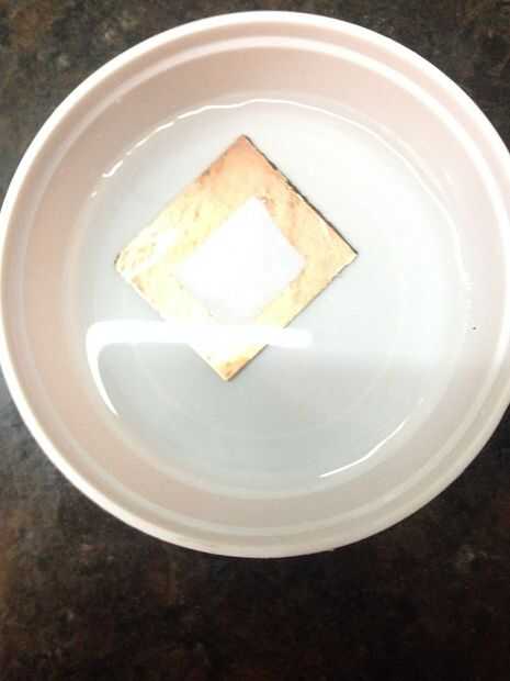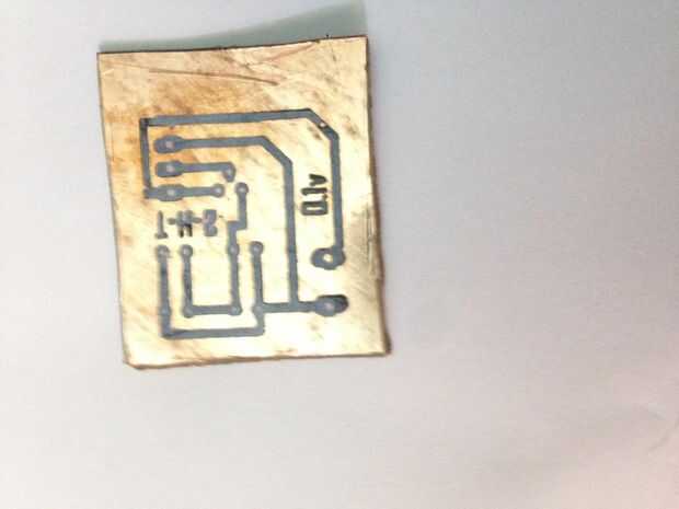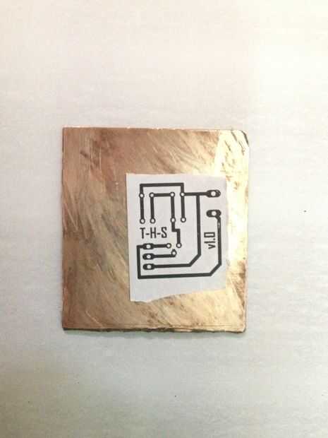 Después de esto inmediatamente sumergir en agua y frotar suavemente el papel sobre el pcb con el pulgar.