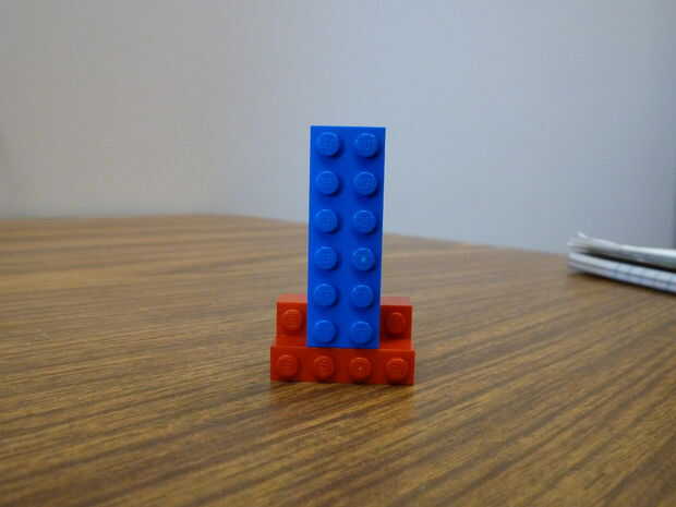 y luego tomar la pieza de 6 x 2 lo coloque en el centro del bloque de 4 x 4, usaba azul pero no importa el color aquí.