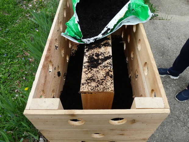 Mi caja de "viod" deja el ancho de un tablero de plataforma alrededor de todo el camino y en la parte superior, para la suciedad... para que 5.5 pulgadas alrededor.