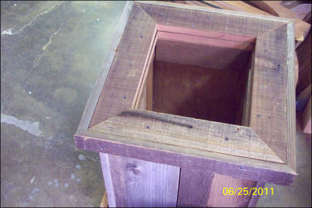 Para mejorar el aspecto y la forma de la jardinera, construí el labio superior de placas cortadas a la medida en la Sierra de mesa.  También usé el corte de sierra para cortar ingletes para cortar las piezas con un ángulo de 45 grados para hacer un ajuste apretado.