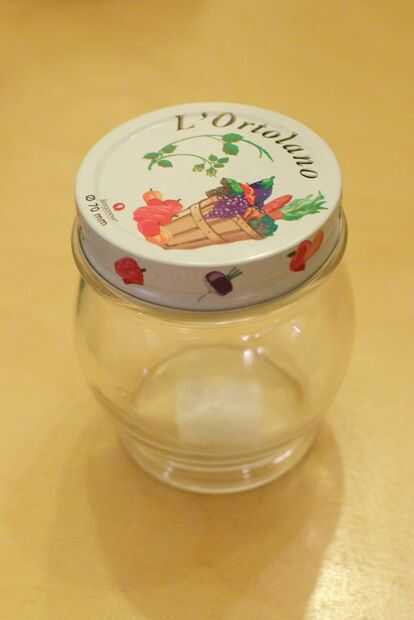 - Un frasco pequeño (alrededor de 0,2 litros) con una amplia tapa que encaja bien. Tarros para mermeladas caseras son perfectos. $2,-