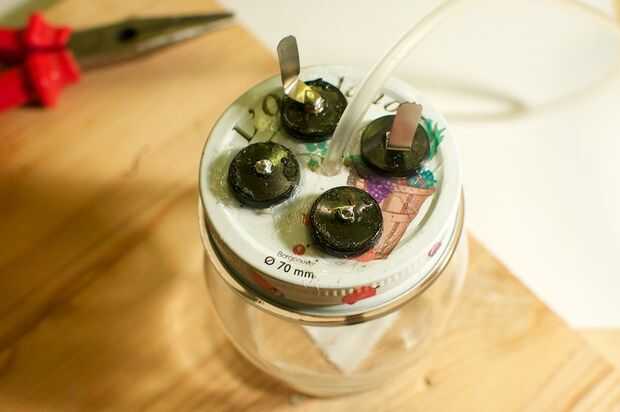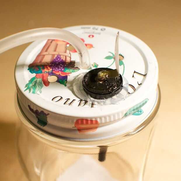 - Sella el frasco, para que el gas proveniente de los electrodos puede escapar la jarra sólo por medio de la sonda.