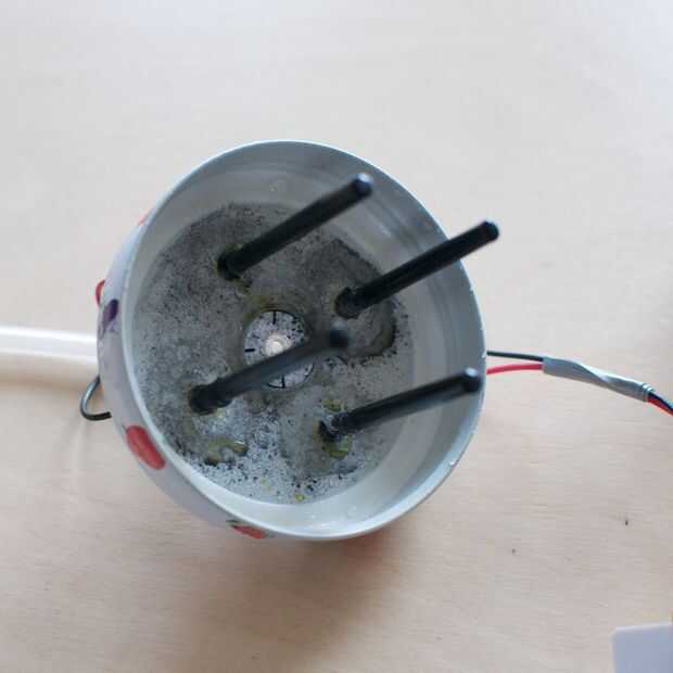 - Los electrodos a través de la tapa del palillo (Recuerde, los electrodos deben ir en la jarra)