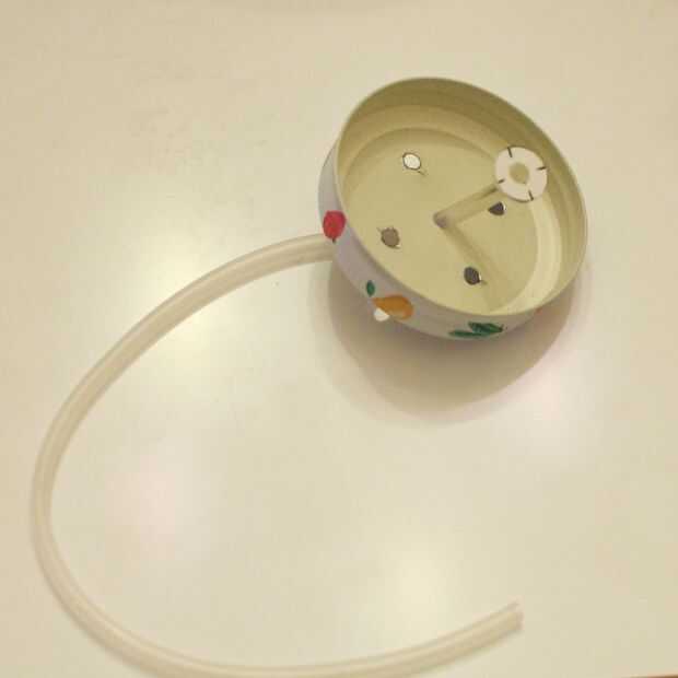- Coloque los agujeros para los electrodos y el tubo. Hice un lay-out en Illustrator y redondeada en la tapa.