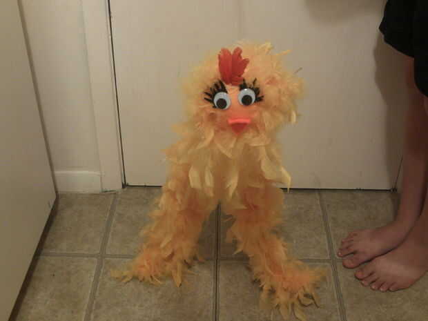 Hacer una marioneta super sencilla!Diversión para los niños de usar y el tamaño perfecto!Creo que este pájaro tonto parece similar a Kevin de arriba.Usted podría hacer los colores para emparejar!Paseos y picoteos con pequeños y sencillos controles pa