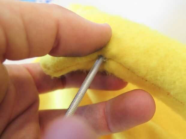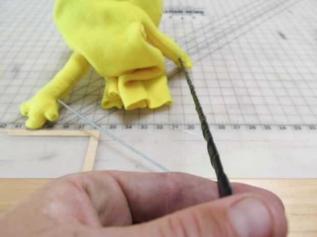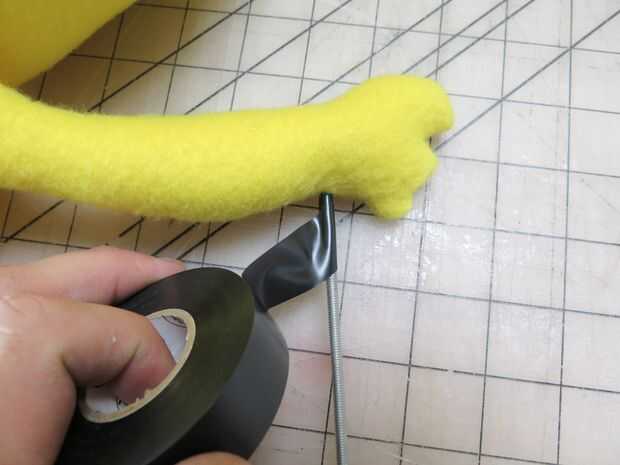 Esto es una marioneta de mano y barra de estilo, y eso significa que necesita algunos Roces a gesticulan. Cortar un stich en los brazos y la cuña en lo que tiene alrededor. Puede ser una espiga, alambre muy duro y una percha desplegado funciona bastante bien, también. Cuña en cada mano y agregar un poco de pegamento caliente para mantenerla en su lugar.