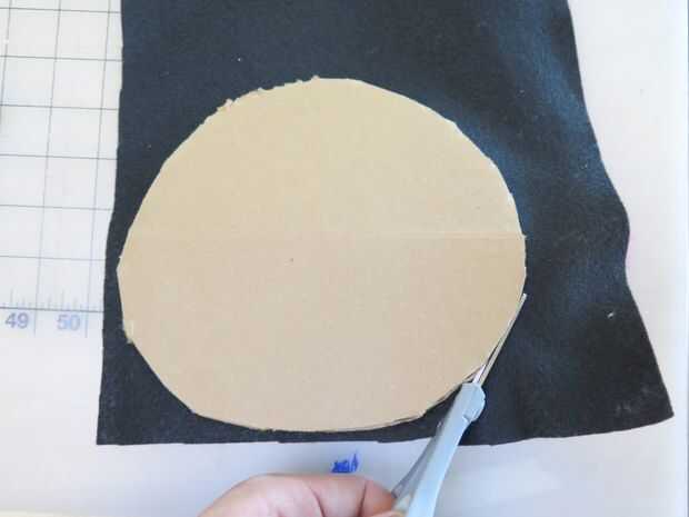 Cortar un óvalo de cartón de cartón del mismo diámetro a lo largo como la abertura de que corte para la boca. Luego pegamento en algunos fieltro negro, doblar y pegar en los labios. Usted puede pegar en una lengüeta demasiado de fieltro rojo si quieres!