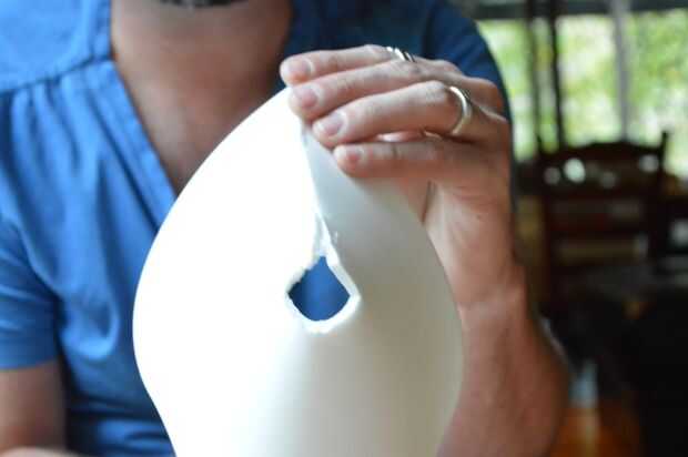 4. el cabeza hasta tener una sección puntiaguda en la parte superior y esta corte. No tienes que hacer esto si usted está usando un sombrero que será cubierto.