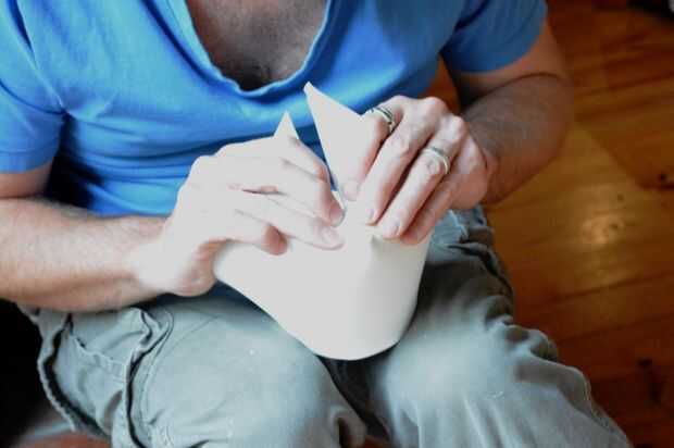 3. Haga un corte a través del centro de la pieza del rectángulo, doblar encima y pegamento – ver imágenes más abajo.