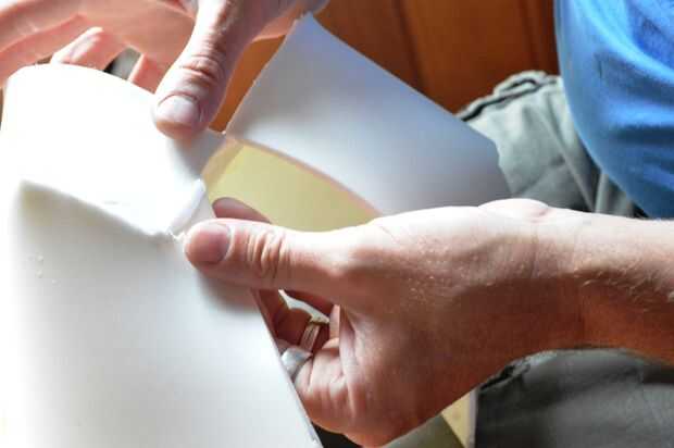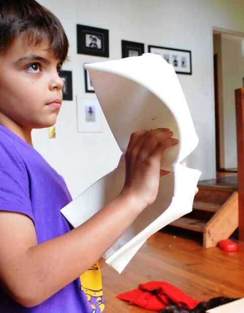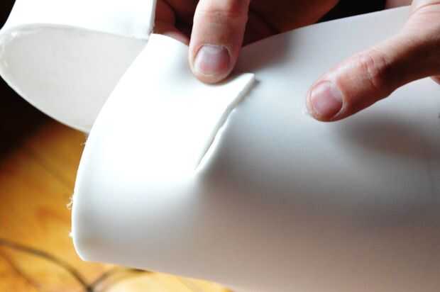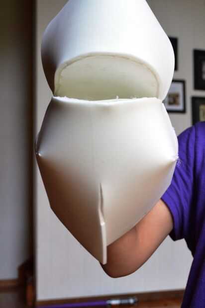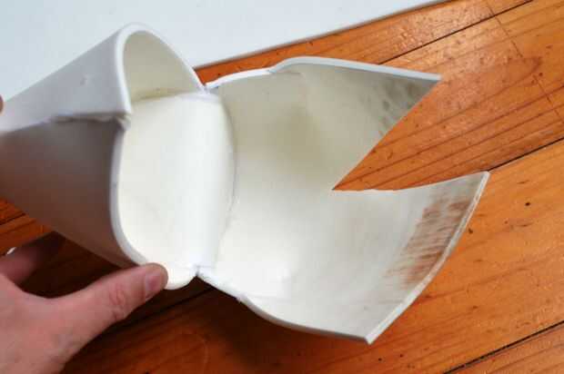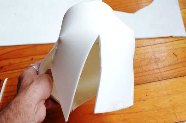 2. para hacer la mandíbula, necesita hacer 2 cortes a ambos lados de la espuma. Mina eran unos 50mm de longitud cada uno. Puedes doblar la espuma y pegamento.