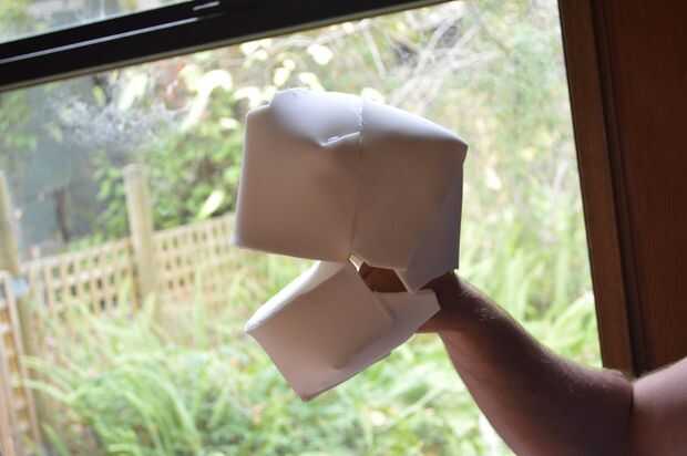 Nota: Si intenta abrir y cerrar la boca, podría encontrar que sus dedos no tienen nada que empuje contra el. Para solucionar este problema necesita pegar un par de piezas de espuma dentro de la sección de la boca. Uno tendrá que ir justo debajo de la parte inferior de la boca y la otra justo por encima de la parte superior. Usted debe dejar demasiado de una brecha entre estas piezas y la sección de la boca como quieras tu mano para caber firmemente dentro de la sección. Utilizar un montón de pegamento para que no mueva o rip como habrá mucha presión en esta parte de la marioneta.