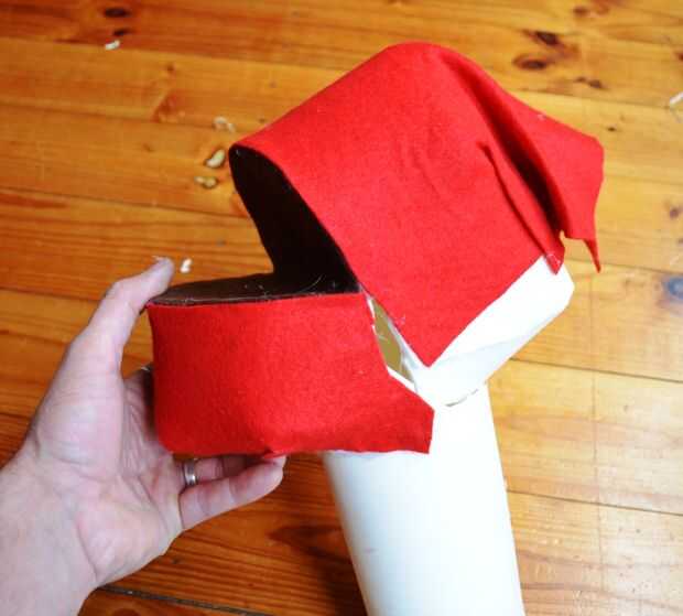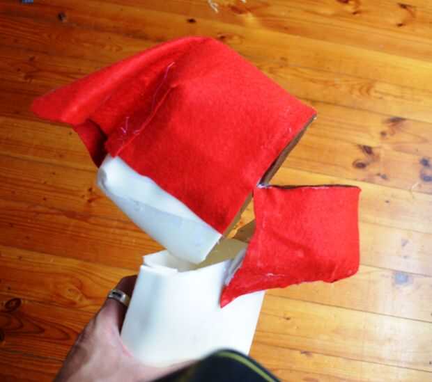 3. por último añadir el fieltro en la cabeza. Puedes ver que teníamos un pedazo grande de fieltro que se pega para arriba. Cortar esto y pegado abajo y el sombrero ocultaba cualquier imperfección.