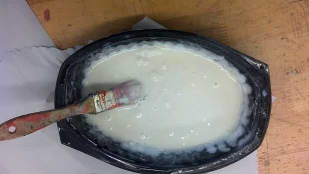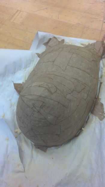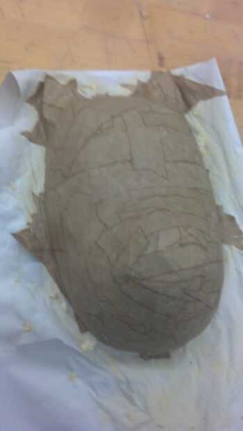 Ahora es tiempo de pasar a papel maché! Ahora, hay cerca de 1 billón diferentes formas de hacer papel maché, y mío no es la mejor. Pero es una manera. Si quieres unos buenos recursos para recetas de mache papier, recomiendo aquí o aquí. También, recomiendo usar a algún tipo de liberación de molde/form (como vaselina). Hará que el siguiente paso sea más fácil.