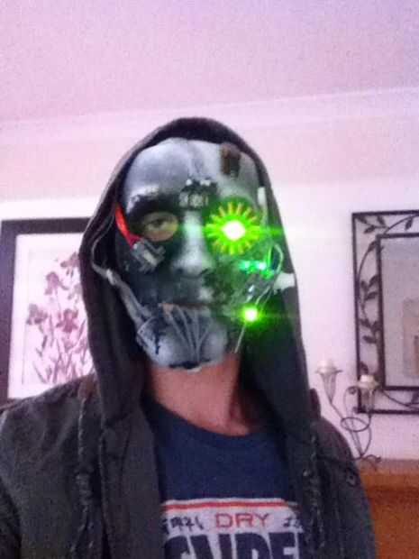 Usted probablemente no será capaz de hacer una réplica exacta de esta máscara, ya que utiliza partes de 3 PC vieja, 1 robot de juguete de perro y 1 radio viejo. Aún así, me gustaría animarte a conseguir creativo con lo que tienes!