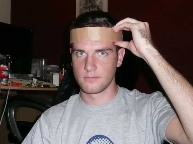 Tomar una tira que se ajuste alrededor de la cabeza y doblar un montón a lo largo de su longitud para que sea flexible. Envolver cómodamente alrededor de su frente y cinta juntos.