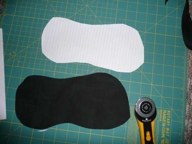 En primer lugar, hacer recortes de papel de la forma de cada boca más de una 1/2" extra todo alrededor. Coloque el papel sobre tu tela y corte a.