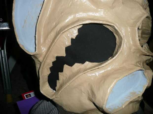 Desde el interior de la máscara, Aplique pegamento pegajoso liberalmente alrededor del borde del agujero de la boca. No seguir el borde de los dientes - siga el contorno de donde sería el labio.