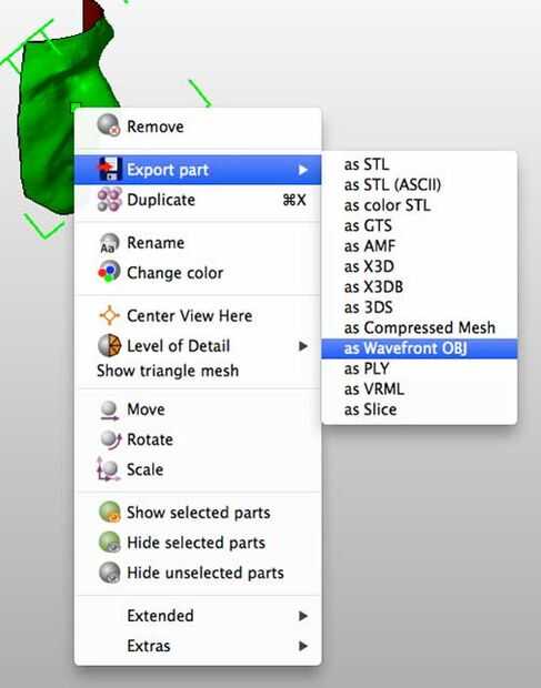 Haga clic derecho sobre la máscara y seleccione exportar parte y luego su formato preferido. Wavefront OBJ es una buena opción.