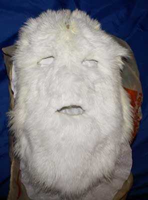 En la foto, verá que puse la máscara en un par de filtros de café que se colocan sobre la superficie de una bolsa de bolsas. La superficie curva se asemeja a la curva de una cabeza humana. También coloqué el pequeño pezón de un tarro de miel de abeja donde la nariz es sostener el punto de la nariz como se seca más.