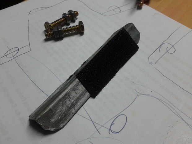 -metal-corner: se utilizará una cara para pegar el velcro, con el pegamento fuerte y la otra cara te haga dos agujeros para fijar los tornillos y la tuerca de los tornillos.