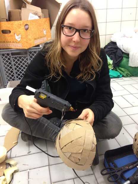 primer paso es conseguir viejo cartón y cortarlo en tiras y pedacitos de su elección. Los más pequeños se cortan, el detalle más es posible añadir a la forma general. Empezar por la cola una banda alrededor de su cabeza para adaptarse a sus dimensiones. Ahora construir la construcción básica con más rayas que forma una esfera redonda en la cabeza superior. (Ver primera foto) segundo paso es rellenar los huecos con trozos más grandes de cartón. (Ver segunda foto)