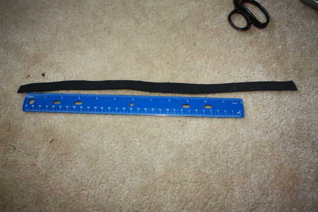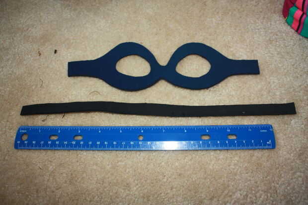 La longitud de la correa variará dependiendo del tamaño de la cabeza, o cómo apretado quieres la máscara para ser. Me gusta lo que es de neopreno trozos (para igualar). Pero cualquier tela elástica o elástico hará aquí.