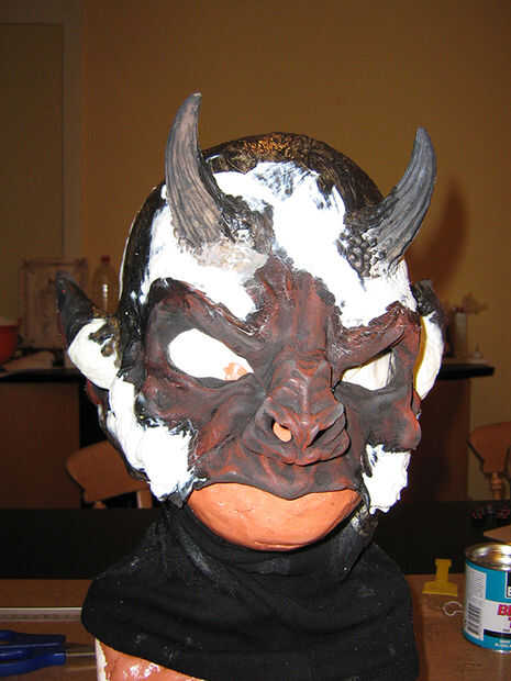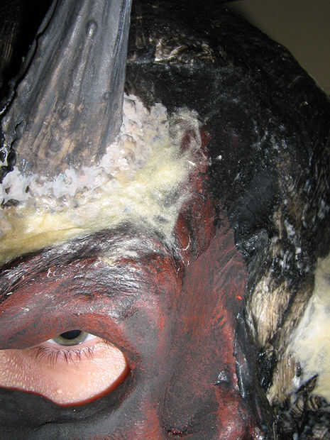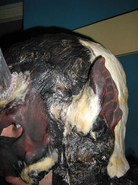 Torundas de algodón y toallas de papel empapados en látex o caucho líquido son muy maleables. Si tienes talento escultura más que yo, esto sería el paso donde esculpen detalles en la mascarilla.