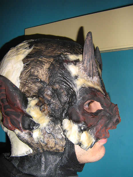 En segundo lugar, sobre todo en las partes de la máscara donde hay prótesis ni máscara existente, usted lo necesita toallas de papel empapados en el látex o el caucho líquido como piel. Obviamente, si está presente, debe integrarse en datos existentes. Recomiendo por lo menos cuatro capas de 'piel'.