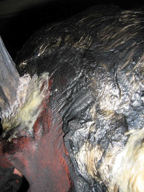 Entre las capas de toalla de esponja y papel de algodón, usted puede dejarlo seco. Látex y caucho pegan bien a sí mismos y aunque en su mayoría trabajado mientras estaban todavía húmedos, debe ser capaz de trabajar con capas secas. Por suerte-en mi caso, este paso llevó a cabo a través de varias noches.
