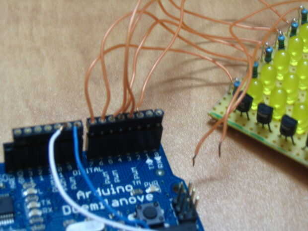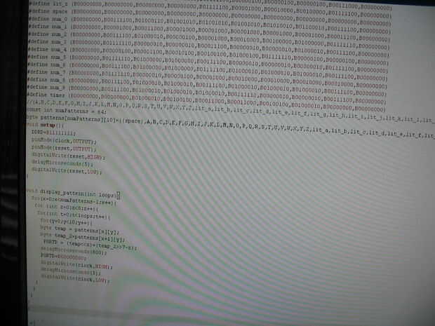 Si usted decide usar registro de cambio no necesitará preocuparse por desconectar el 0 y el 1 pin en el arduino. He añadido el código para controlar la matriz con cambio de registros demasiado.