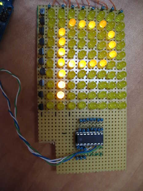después de hacer una matriz de 8 X 10 mucha gente me preguntó acerca de ampliar la matriz a algo más grande y algunos quisieron escribir cosas a la matriz mediante un PC, así que un día miré un montón de LEDs que tenía sobras de un cubo de LED proyec