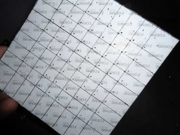 Primero, marca líneas para X y Y el eje 10 mm gap each.then hacer agujeros con un alfiler para cada LED como se muestra.