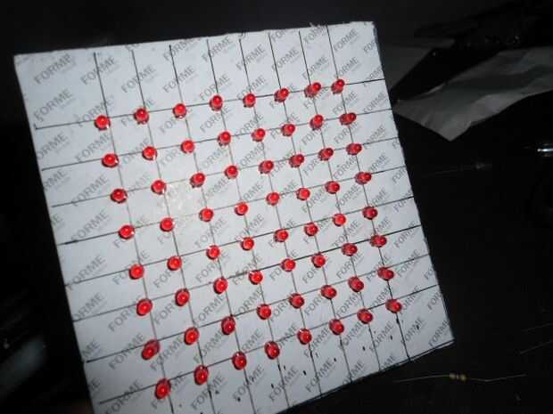 después de hacer una matriz de 8 X 10 mucha gente me preguntó acerca de ampliar la matriz a algo más grande y algunos quisieron escribir cosas a la matriz mediante un PC, así que un día miré un montón de LEDs que tenía sobras de un cubo de LED proyec