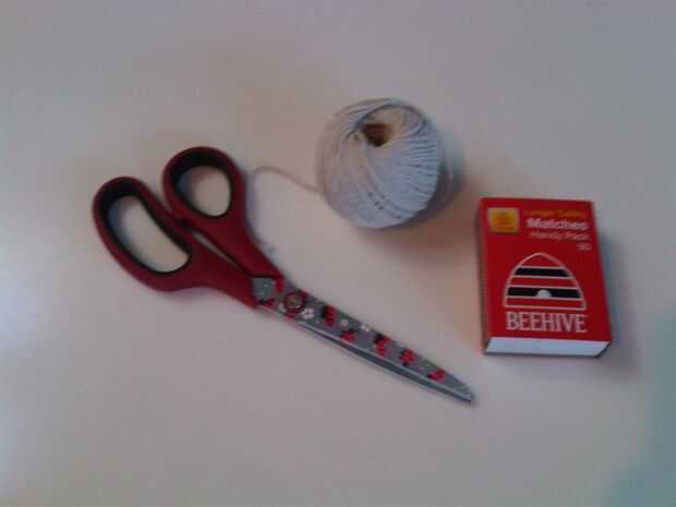 No cuesta nada, sólo conseguir tijeras, cadena, papel para hornear, fósforos, un tazón de fuente - confío en que ya tienes un microondas:)- y es que la cosa podría tener un minúsculo pedacito más apuro con cera. Para esto que usado un montón de viejas crayolas, del mismo color, pero hay muchos otros lugares para conseguirlo desde:
