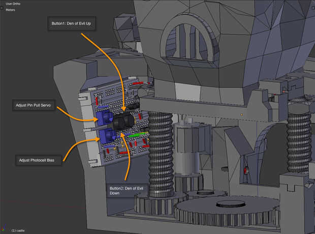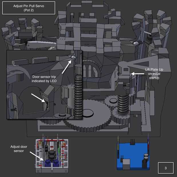 Nota 7) que botón 1 elevará su placa de elevación y de la luna, pero no va a cambiar la función del pote 2 (como se describe en el punto 3). Olla 2 sólo ajusta el sensor de la puerta cuando el Arduino es inicialmente comenzó con la placa de elevación hacia arriba. Después de eso, siempre le recorte el servo de perno de tirón.