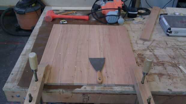 Usando una espátula, raspe todo el exceso de cola de la mesa. Esto debería ser fácil.
