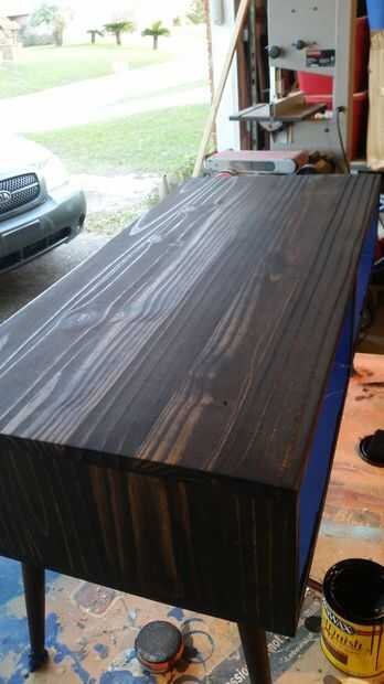 Una vez que la Mancha ha tenido oportunidad de que se seque durante la noche puede comenzar el acabado poliuretano. Estoy usando una marca de Min-cera brillo secado rápido también aceite base. Aplican 4 capas, lijar ligeramente con lija 400 entre capas. Asegúrese de seguir sus instrucciones de tiempo seco de marcas poly. También, asegúrese de utilizar durante mucho tiempo incluso trazos y una brocha de calidad para los mejores resultados.