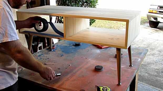 Aplicar la cinta de pintor en el interior borde de la mesa y las tapas de metal a los pies de las piernas. Trate de mantener sus líneas y bordes rectos y ajustados.