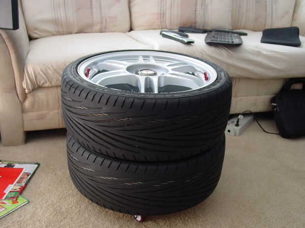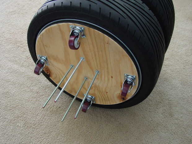 Puesto que mis ruedas tuvieron 8 agujeros para adaptarse a diferentes tuerca del estirón de espaciado y sólo usé 4 tuercas bellota puse mi tuercas en los otros 4 agujeros. No está fijo en el lugar pero los agujeros y las tuercas son cónicos para que se sientan muy bien.