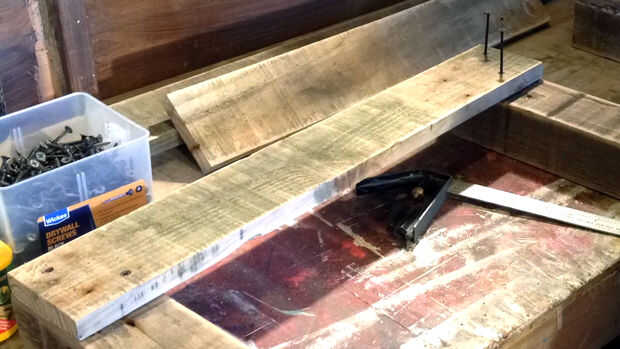 A continuación, medido hacia fuera 2 x 23 y 2 x 36 pulgadas plataforma tablones de madera para el marco y coloque las piernas (ver imagen).