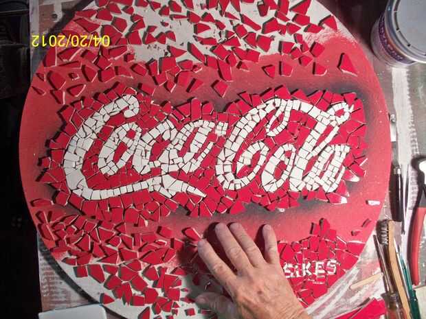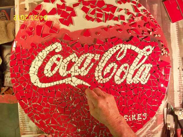 Después de que estaba satisfecho con mis piezas de azulejo y su colocación, volví y pegadas en su lugar. Se utilizó una azulejo de la masilla y se trata simplemente de aplicar una buena cantidad de pegamento a la parte posterior de cada pieza. La baldosa con la masilla se coloca en posición, torcido y se aplica presión, piezas se mantienen al mismo nivel, tanto como sea posibles.