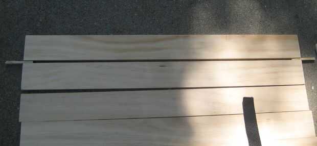 Línea de las tablas usando un trozo del enrejado como espaciador para asegurarse de que están separados uniformemente. Si un lado es mejor que la otra, coloque el lado más agradable hacia abajo en este momento porque estamos en la parte inferior.