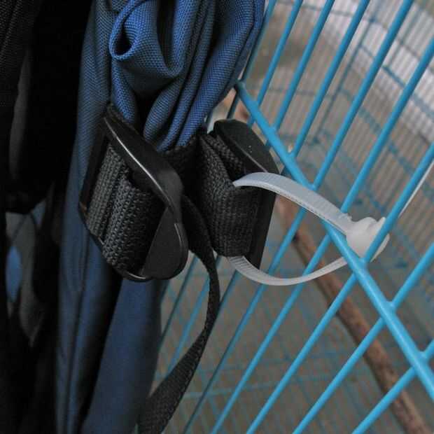He encontrado lazos en mi mochila que parecía diseñado para sujetar cosas a la mochila.  Tan fácil!  No hay necesidad de modificar nada.  Sólo usé bridas para sujetar la jaula a los bucles.