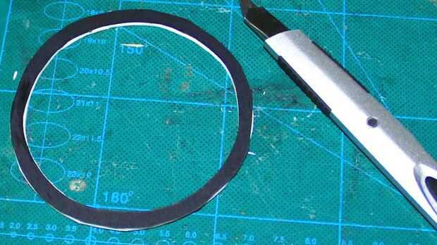 Pegar un papel de trazo tarjeta negra en el 3er círculo y dibuje un círculo más pequeño dentro de ella y cortarlo. Esta pieza va a ser utilizado como un marco en la cima de la montaña.