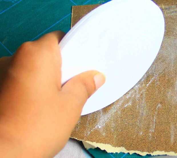 Pegúelo en la cima de la montaña y usar otra vez el papel de lija para hacer los bordes lisos.