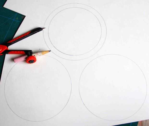 Dibuja 3 círculos de su tamaño deseado de la montaña en la parte superior un tablero de espuma dura.