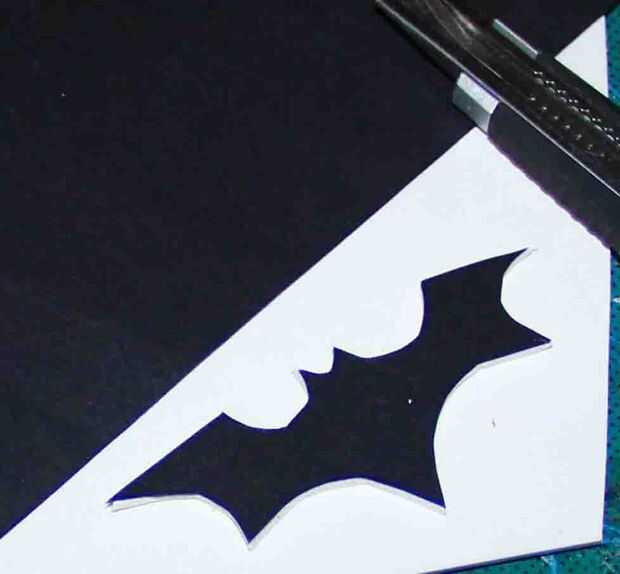 Dibujar el logo de batman en un papel negro y lo corte.